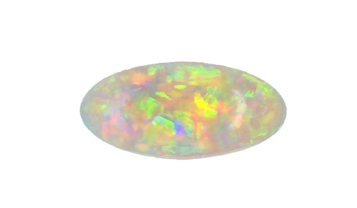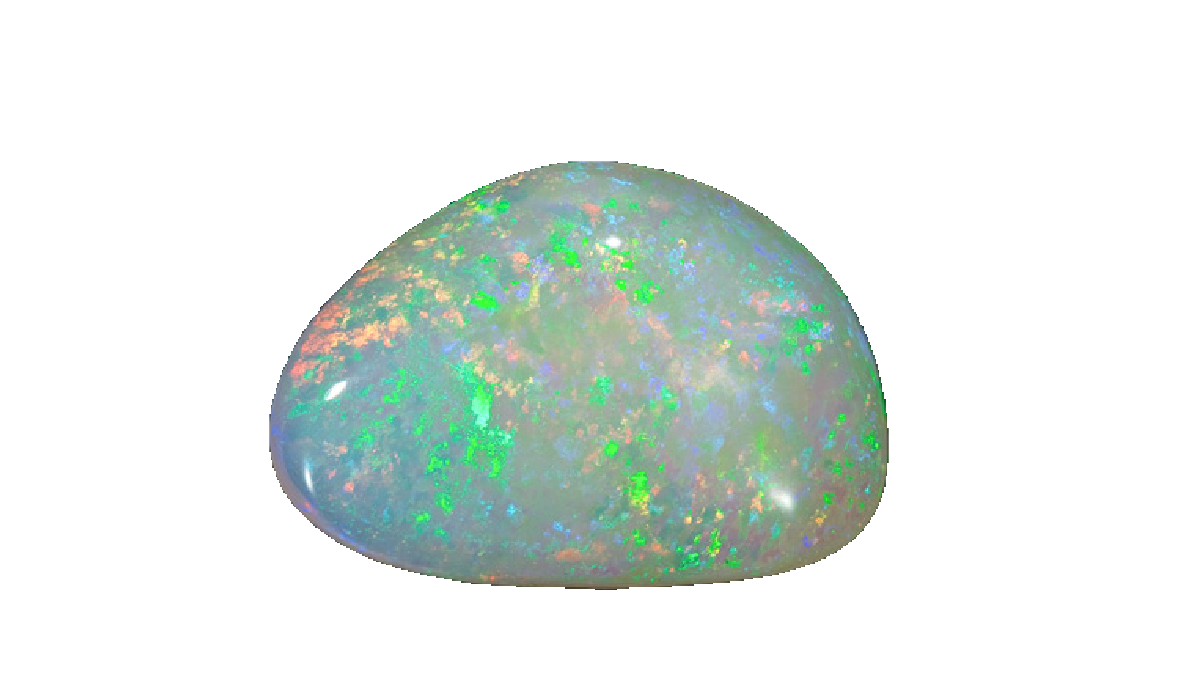歐泊,二氧化硅組成,含水量5~10%,最多可達20%,有各種顏色,具變彩效應的,又稱為「貴歐泊 Precious opal」,硬度5.5,與玻璃同等硬度。