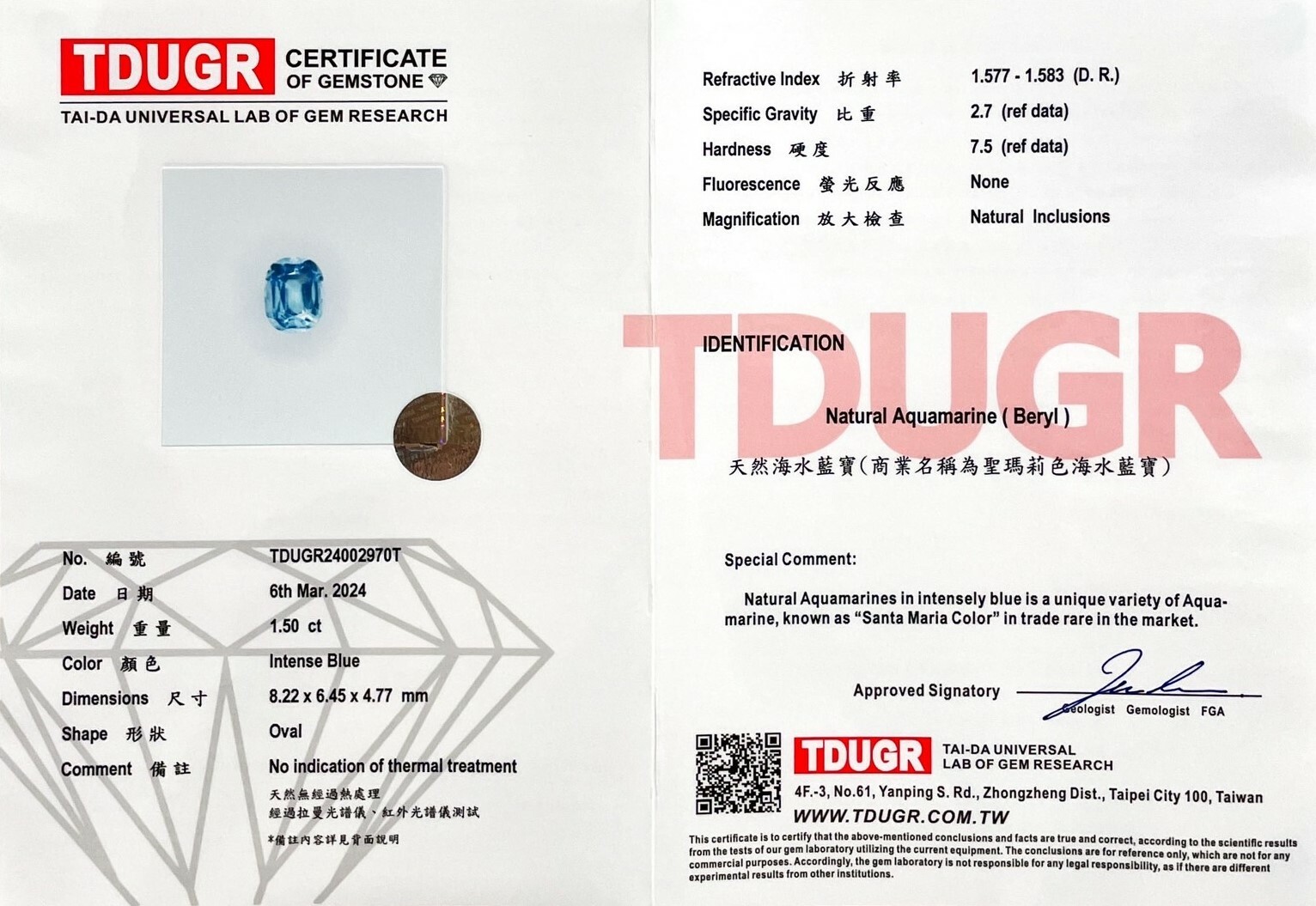 海水藍寶|Aquamarine▴ 重量:1.50ct (8.22*6.45*4.77mm)▴ 處理:無處理| No treatment