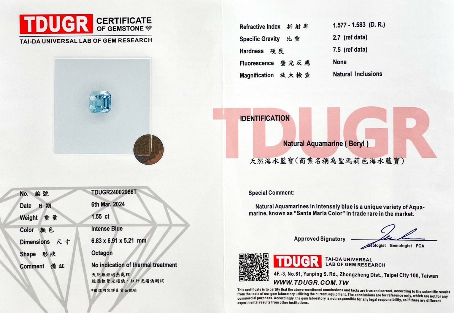 ▴ 顏色:聖瑪莉色|Santa Maria▴ 證書:TDUGR證書