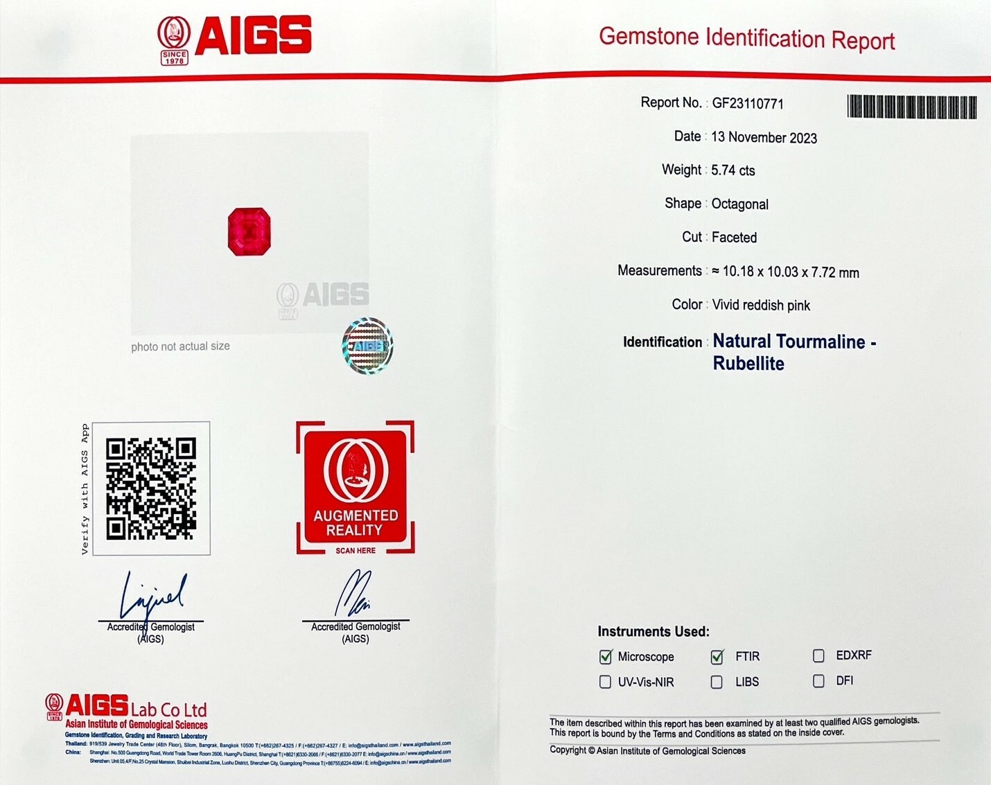 紅寶碧璽|Rubellite▴ 重量:5.74ct (10.18*10.03*7.72mm)▴ 顏色:紅色