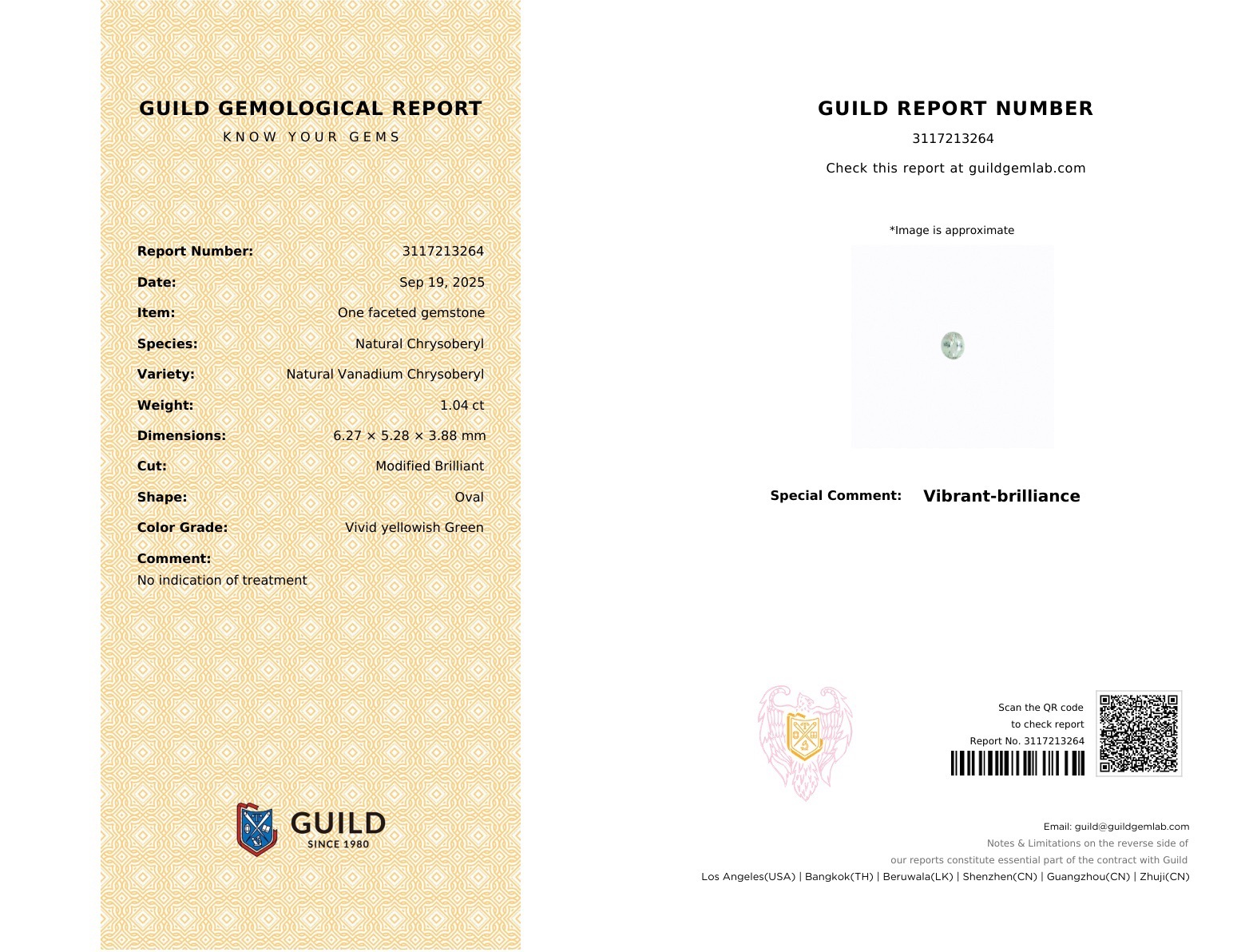 釩金綠貓眼|Vanadium Chrysoberyl▴ 重量:1.04ct (6.27*5.28*3.88mm)▴ 處理:無處理|No treatment
