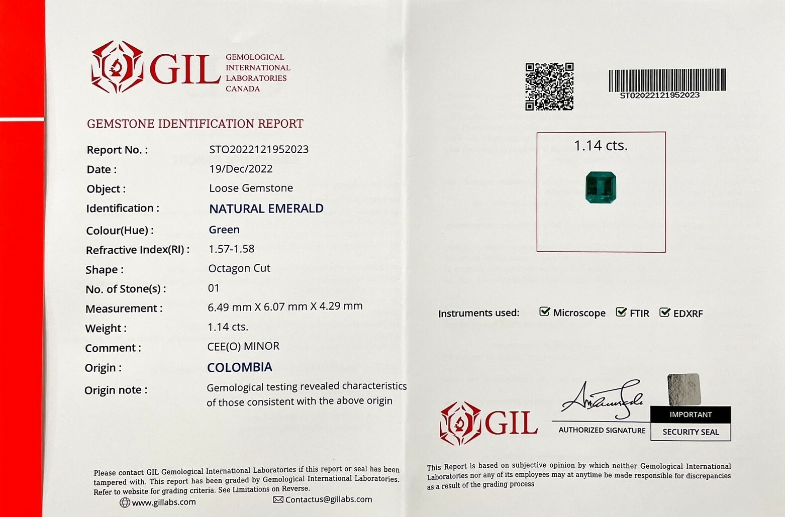 祖母綠|Emerald▴ 重量:1.14ct (6.49*6.07*4.29mm)▴ 產地:哥倫比亞| Colombia▴ 證書: GIL證書|國際證書▴ 處理:輕度浸油處理| CEE(O)Minor