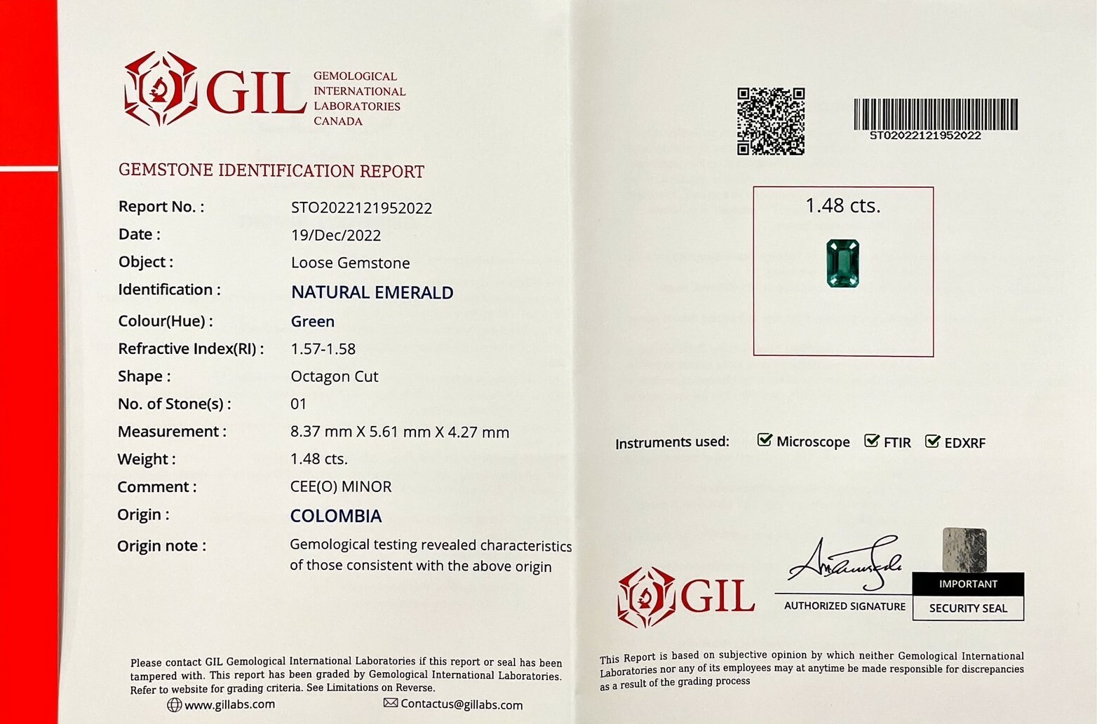 祖母綠|Emerald▴ 重量:1.48ct (8.37*5.61*4.27mm)▴ 產地:哥倫比亞| Colombia▴ 證書:GIL證書|國際證書▴ 處理:輕度浸油處理| CEE(O)Minor