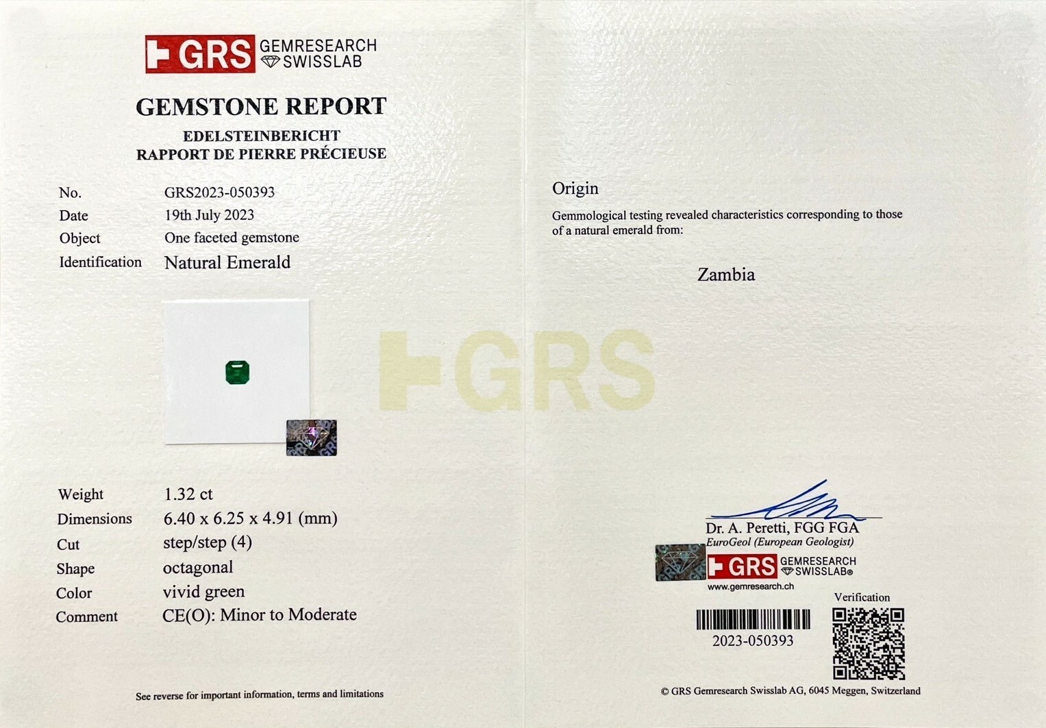 祖母綠|Emerald▴ 重量:1.32ct (6.40*6.25*4.91mm)▴ 產地:尚比亞| Zambia▴ 證書: GRS證書|國際證書▴ 處理:輕至中度浸油處理| CE(O)Minor to Moderate