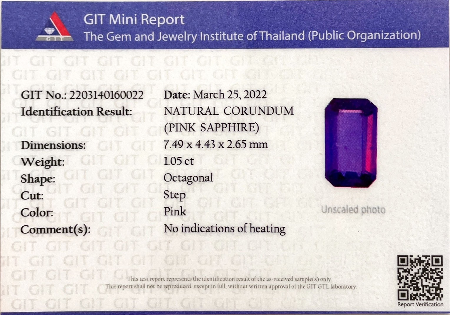粉紫藍寶石|Sapphire▴ 重量:1.05ct (7.49*4.43*2.65mm)▴ 顏色:粉紫色