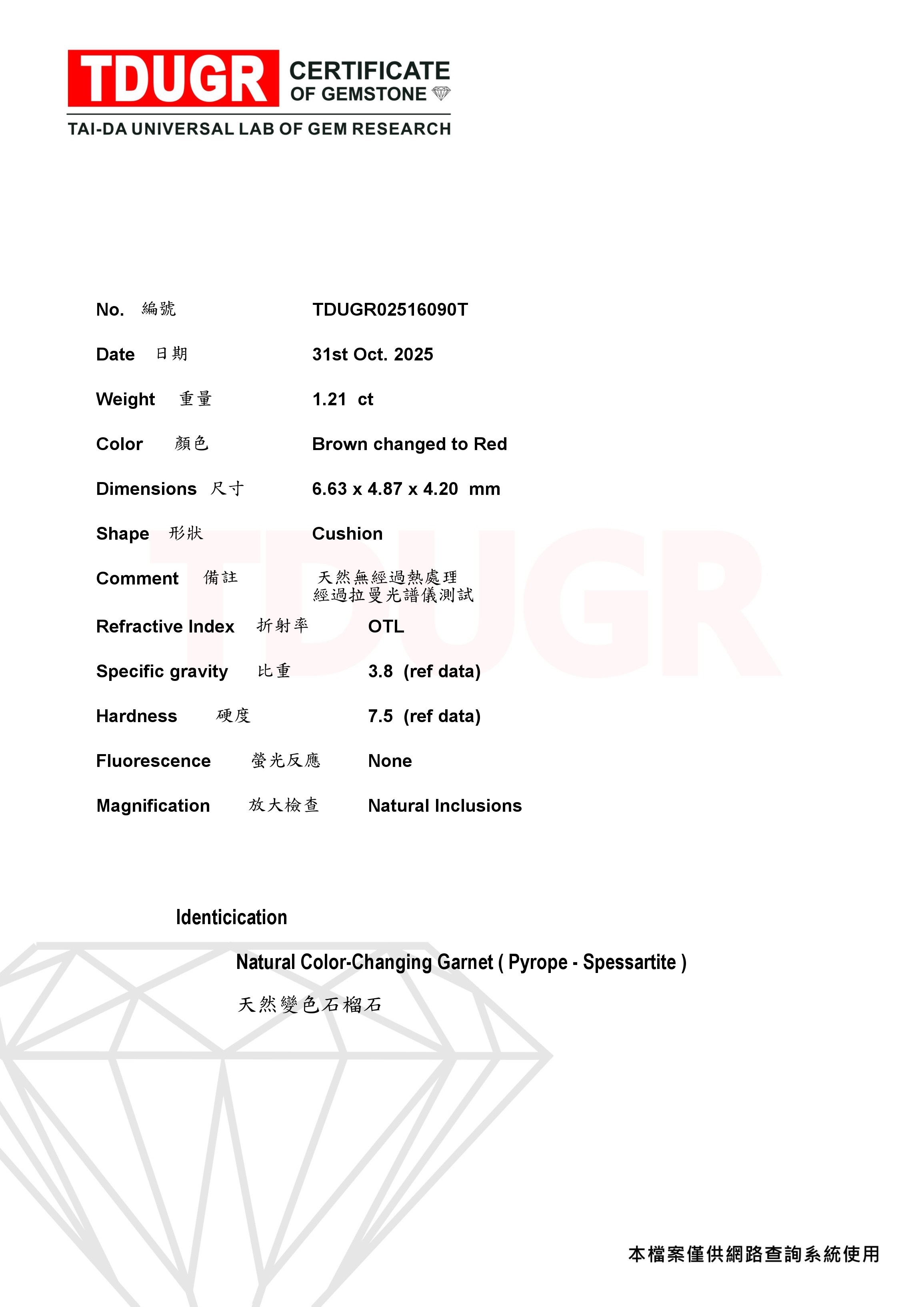 玫瑰石榴石|Garnet▴ 重量:1.21ct (6.63*4.87*4.20mm)▴ 顏色:紅棕色-紫棕色