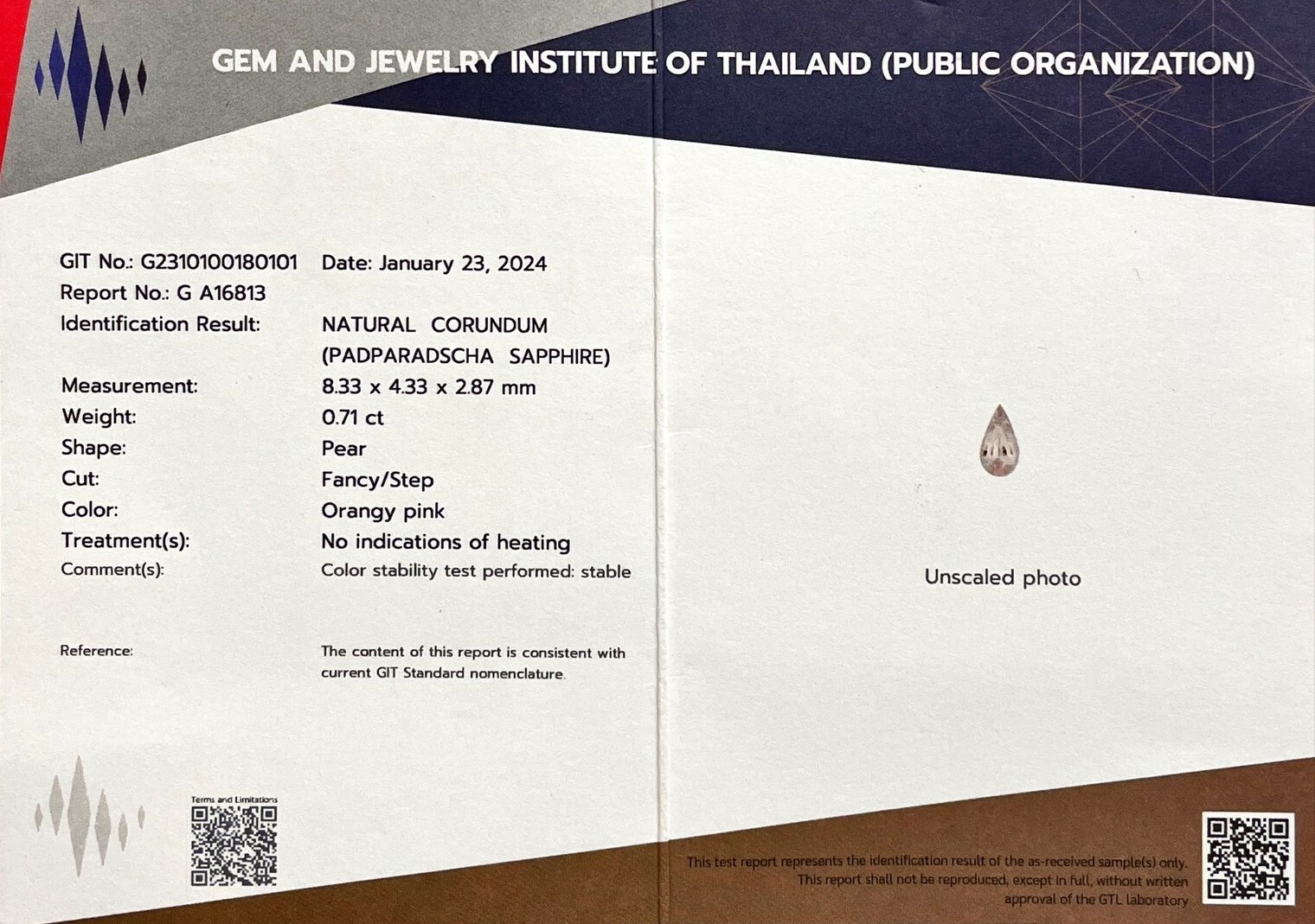 帕帕拉洽|Padparadscha▴ 重量:0.71ct (8.33*4.33*2.87mm)▴ 證書:GIT證書|國際小證書