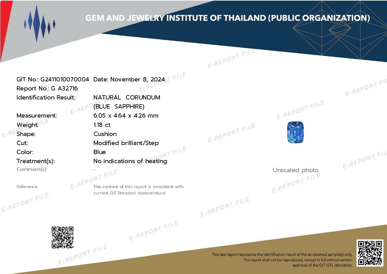 藍寶石|Sapphire▴ 重量:1.18ct (6.05*4.64*4.26mm▴ 證書:GIT小證▴ 處理:無處理| No treatment