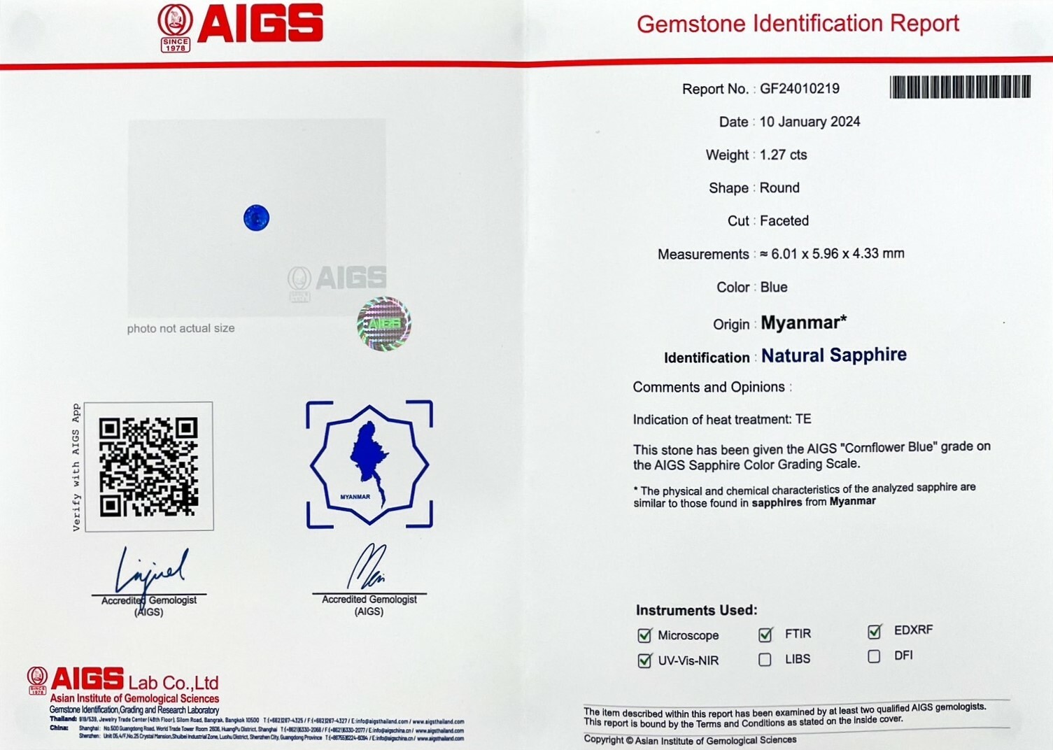 ▴ 證書:AIGS 證書▴ 產地:緬甸