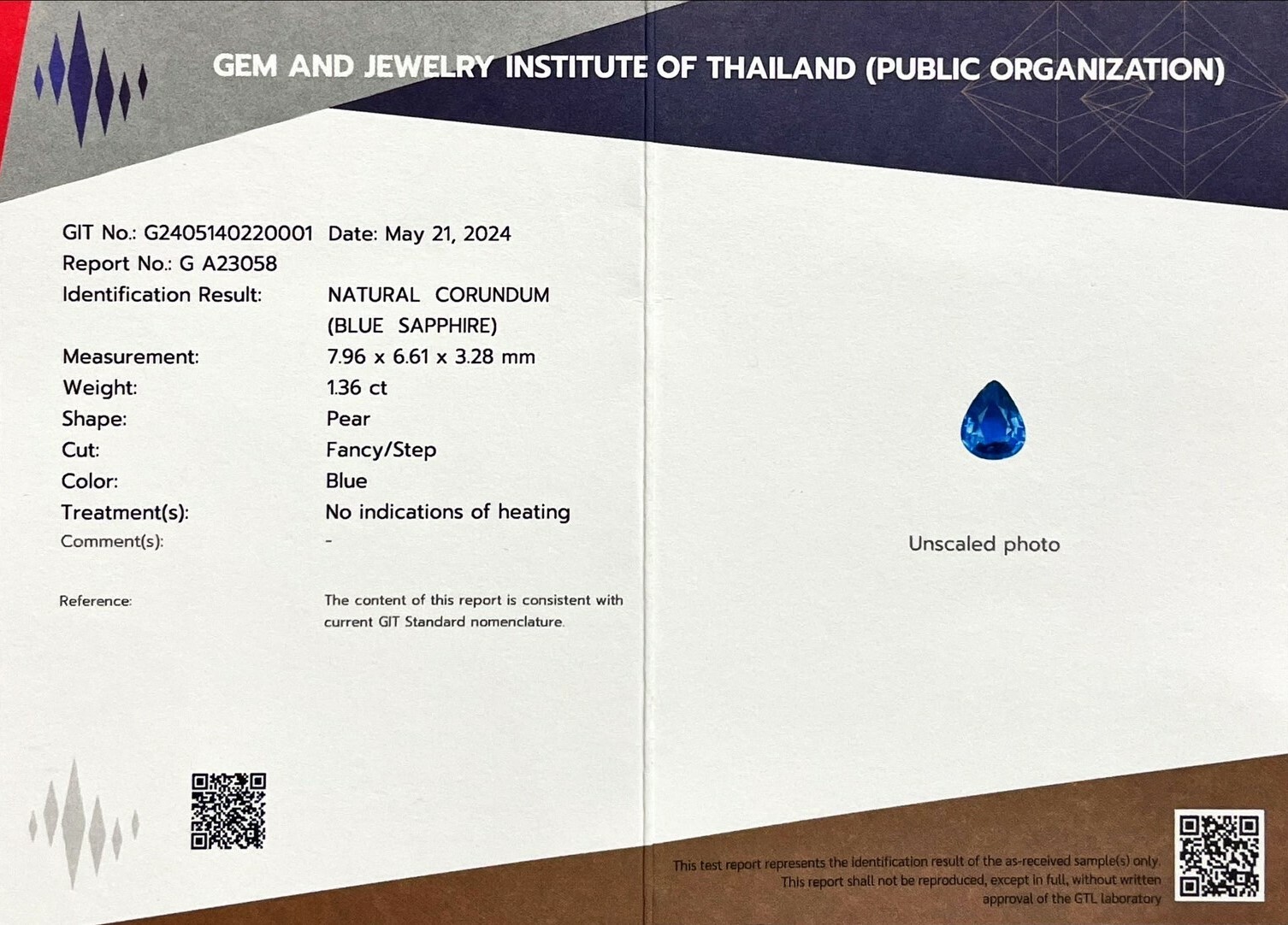 藍寶石|Sapphire▴ 重量:1.36ct (7.96*6.61*3.28mm)▴ 證書:GIT證書▴ 處理:無處理 No treatment