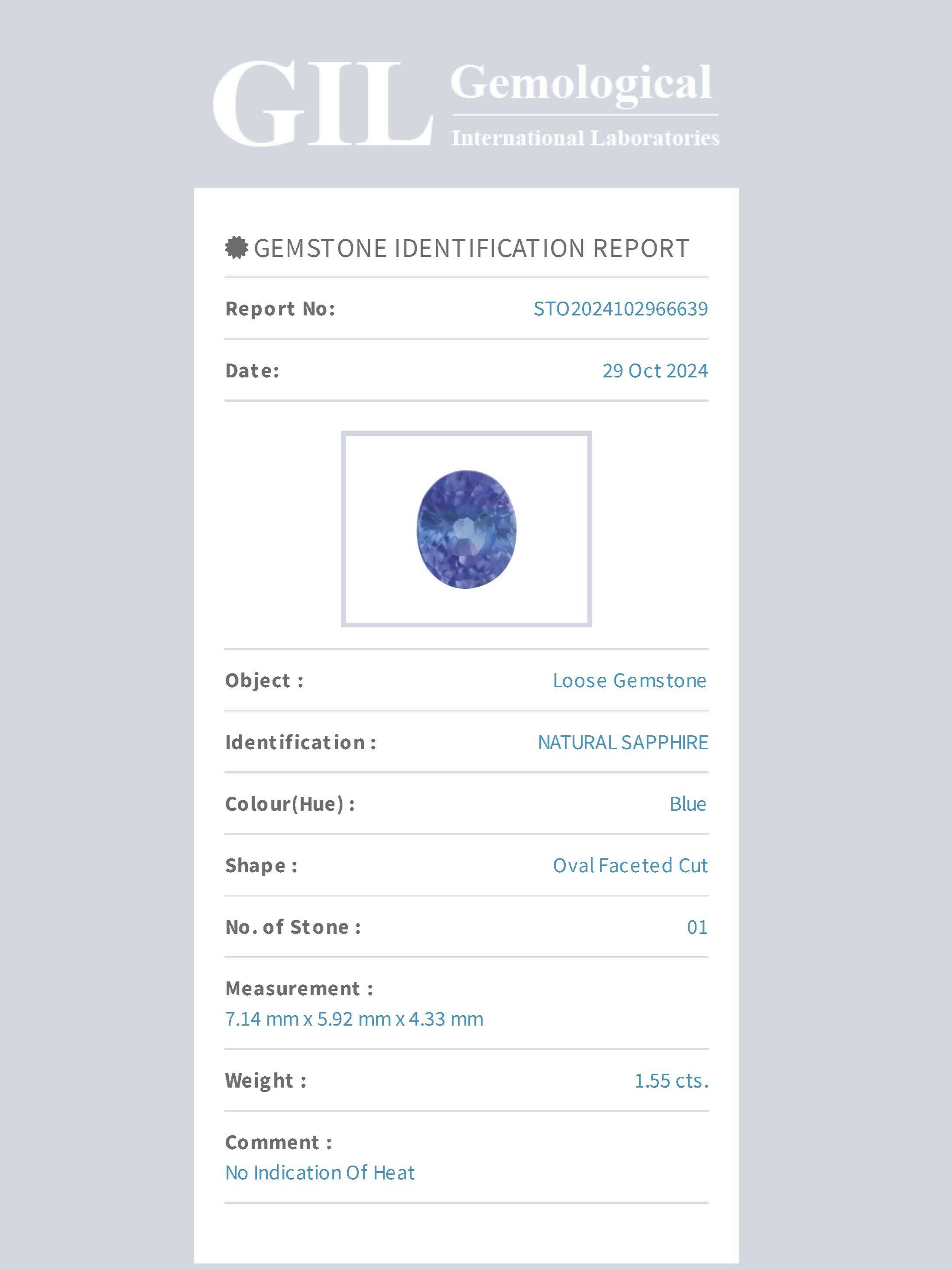 藍寶石|Sapphire▴ 重量:1.55ct (7.14*5.92*4.33mm▴ 證書:GIL小證▴ 處理:無處理| No treatment