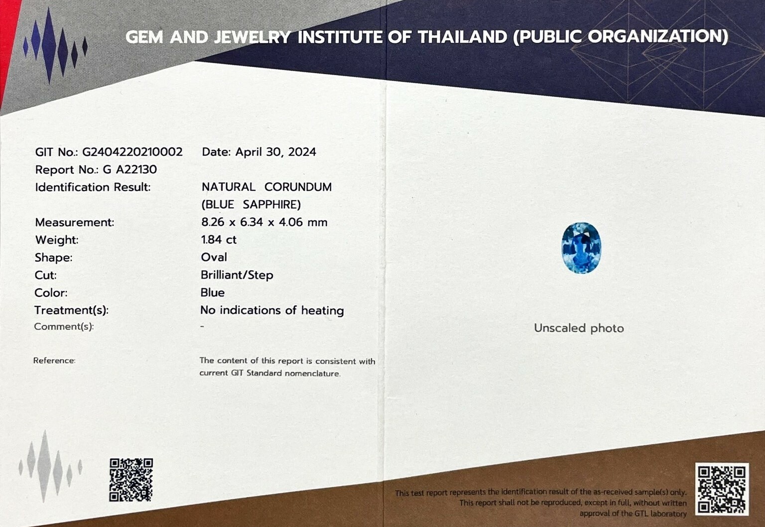 藍寶石|Sapphire▴ 重量:1.84ct (8.26*6.34*4.06mm)▴ 證書:GIT證書▴ 處理:無處理| No treatment