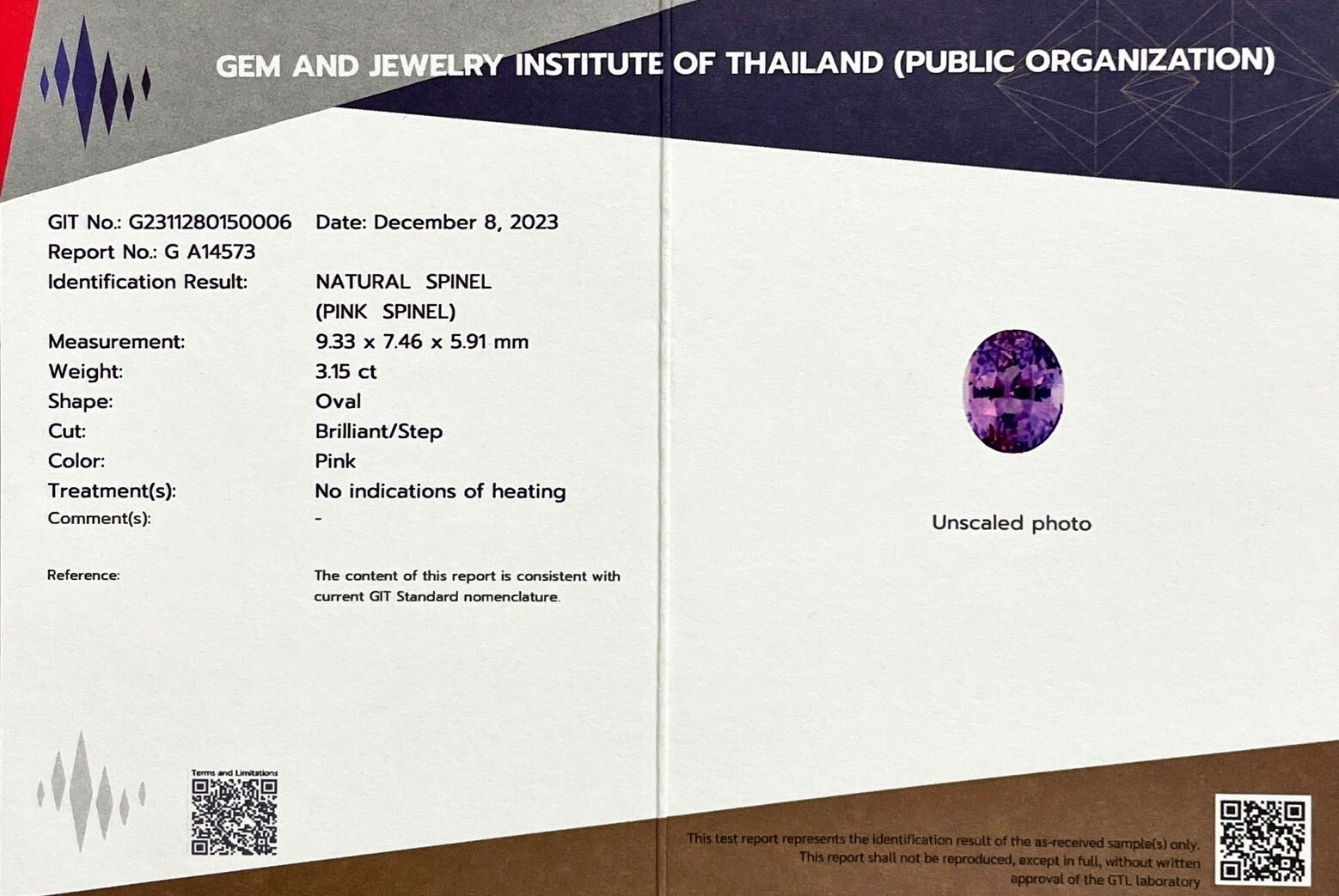 粉紫尖晶|Spinel▴ 重量:3.15ct (9.33*7.46*5.91mm)▴ 顏色:薰衣紫 Lavender