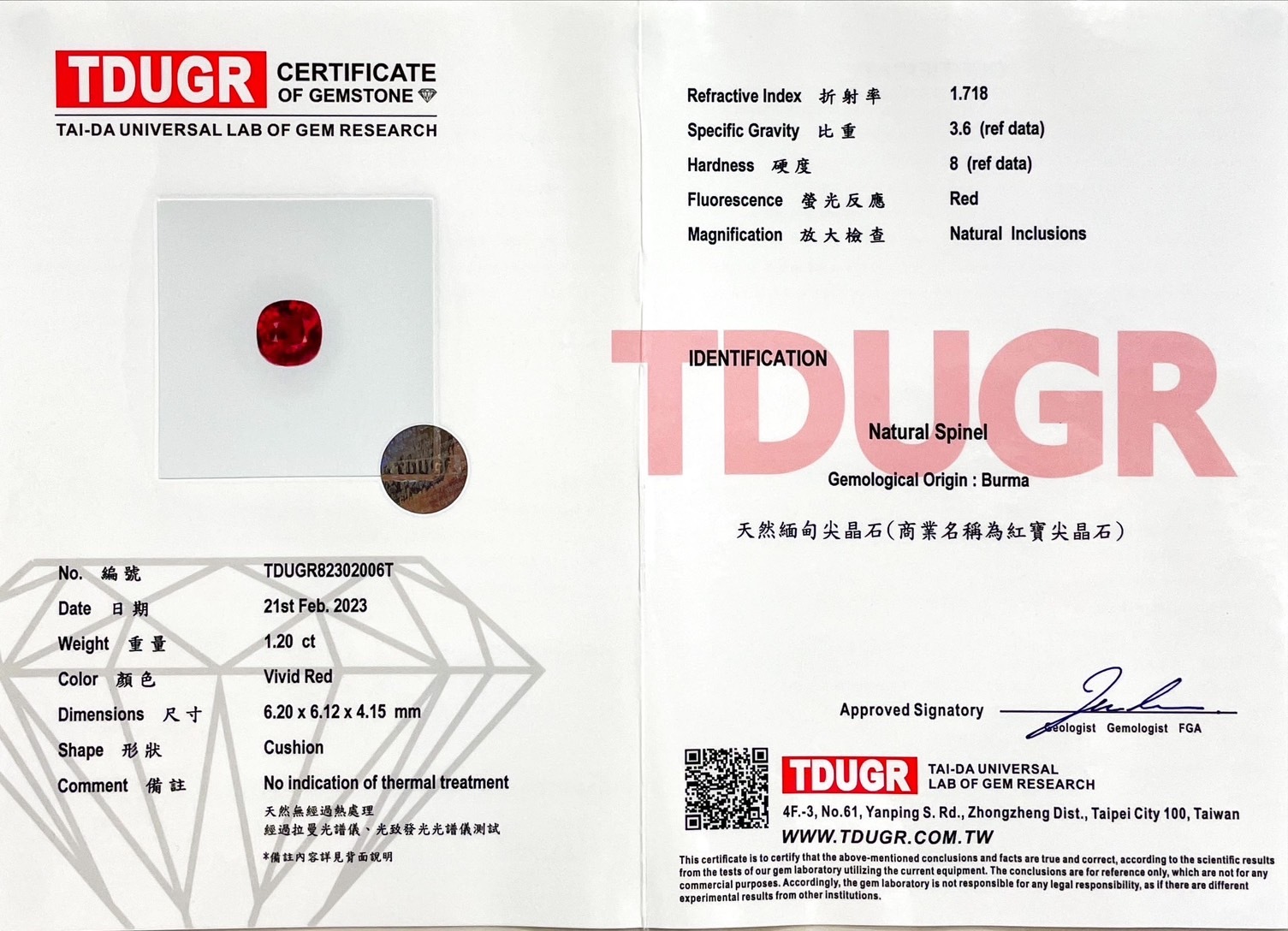 ▴ 證書:TDUGR證書▴ 產地:緬甸 (抹谷)|Myanmar (Mogok)