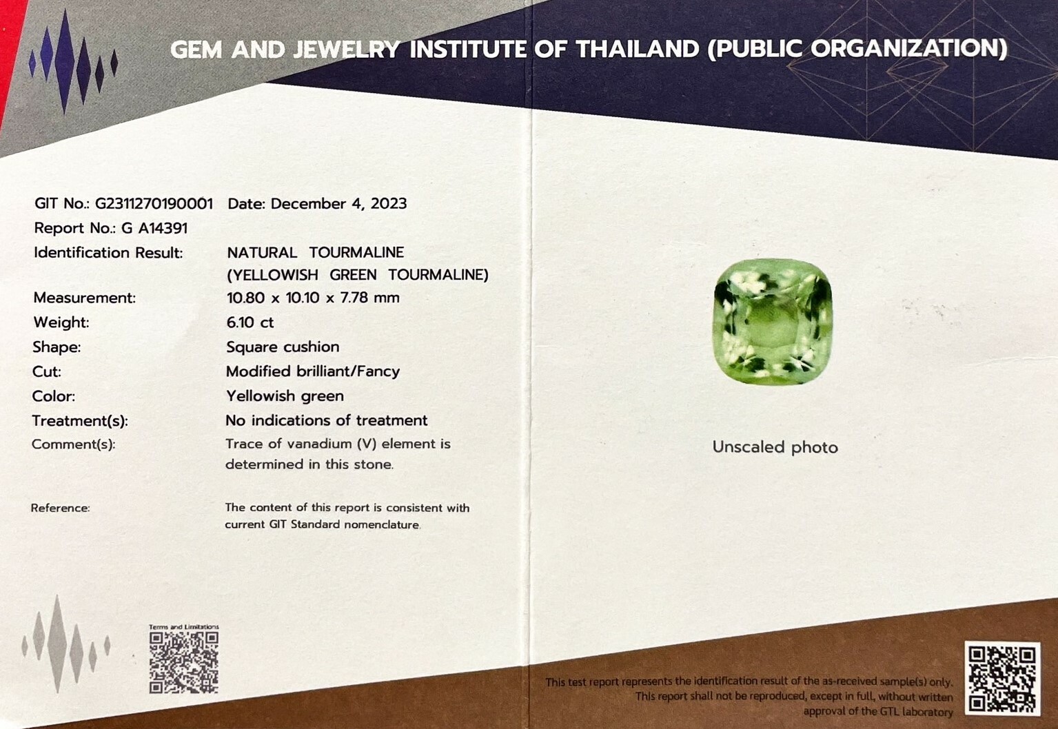 釩碧璽|Tourmaline▴ 重量:6.10ct (10.80*10.10*7.78mm)▴ 顏色:金綠色