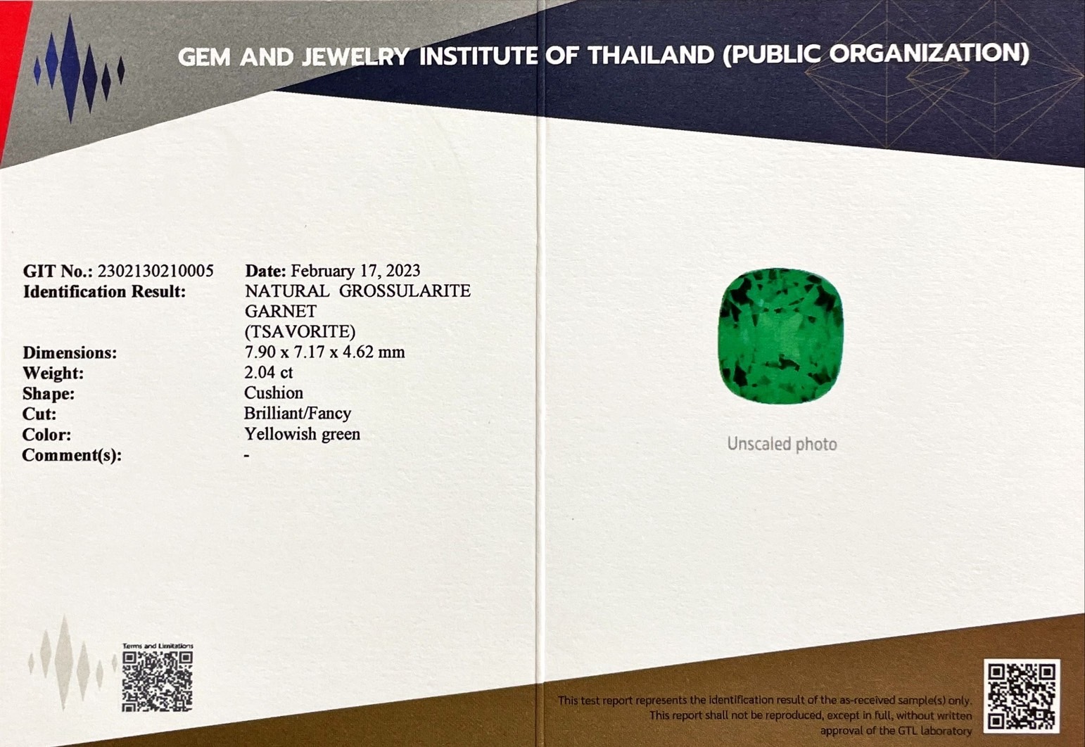 沙弗萊|Tsavorite▴ 重量: 2.04ct (7.90*7.17*4.62mm)▴ 處理:無處理 | No treatment▴ 證書:GIT證書|國際小證書