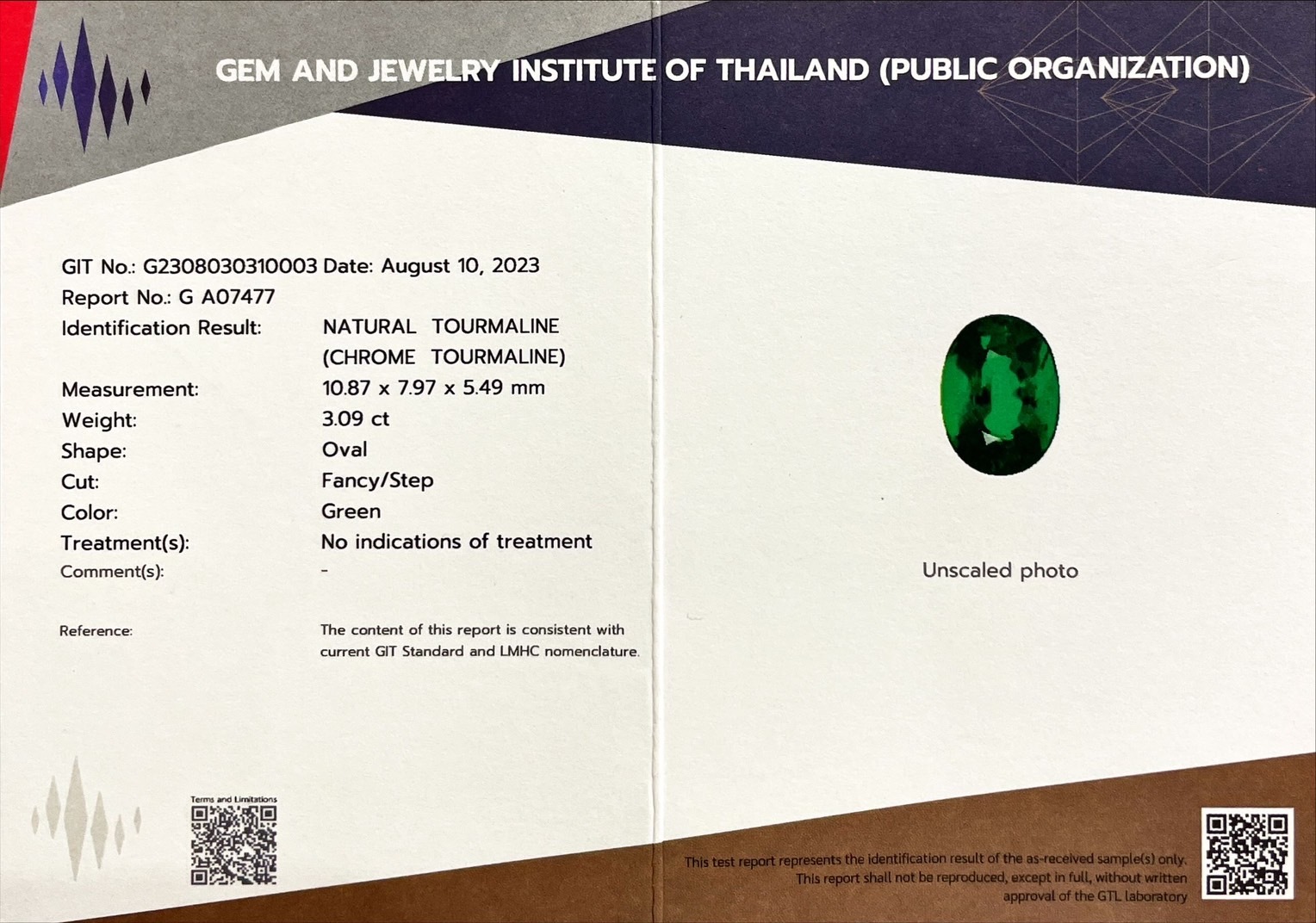 鉻綠碧璽| Chrome Tourmaline▴ 重量:3.09ct (10.87*7.97*5.49mm)▴ 顏色:鉻綠色