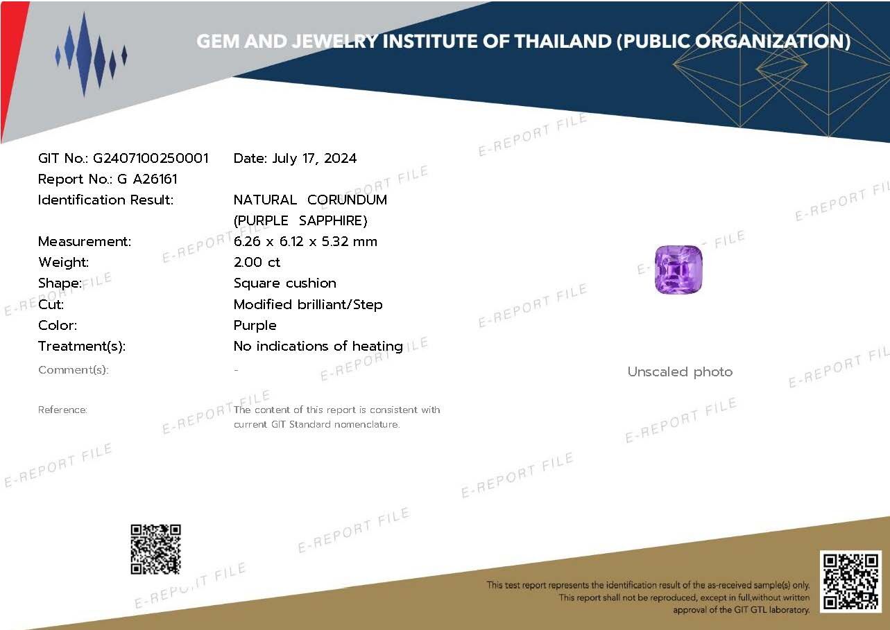 紫粉藍寶石|Sapphire▴ 重量:2.00ct (6.26*6.12*5.32mm)▴ 顏色:紫粉色